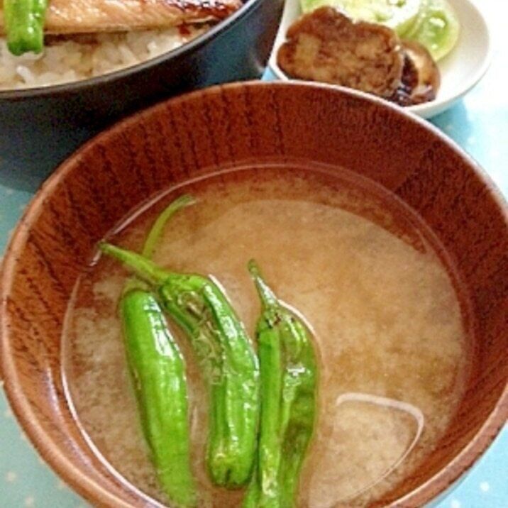 だしといっしょにししとうを煮込んで味噌汁をつくることもできますが、フライパンでカリッと焼き上げて仕上げに加えるようにすると心地よい歯応えと風味が存分に楽しめます。味噌汁の具は、キャベツ、なす、油揚げなどお好みで加えるのもおすすめです。