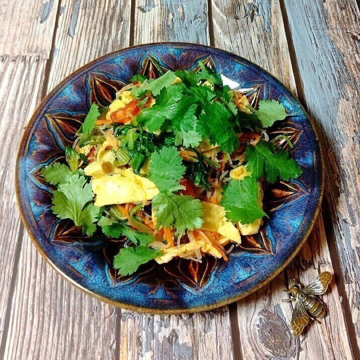 春雨を揚げてサラダにトッピングするだけでこんなに華やかになるんです。レシピはとても簡単なので、パーティーメニューにもぴったり。