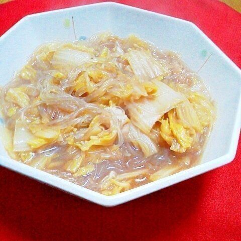 春雨と白菜があればすぐつくれる煮物レシピです。シンプルですがボリュームのある一品。ツルっと食べられるので子どもにもおすすめです。味に深みを出すために、鶏ガラスープの素をプラスすると◎。