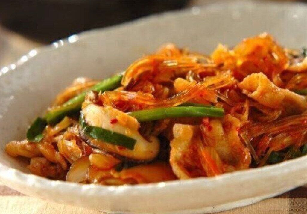 みんな大好きな豚キムチに春雨をプラスして、食べ応えをアップさせたレシピです。春雨は水で戻さずに、豚キムチの煮汁で柔らかくすることで春雨がしっかりと煮汁を吸い込んでくれるので、中まで味が染み込みよりおいしくいただけます。