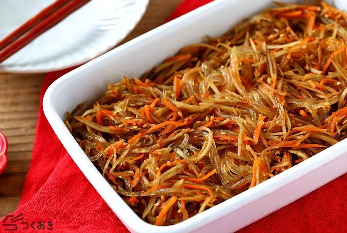 さっぱりと食べることができる「ごぼうと春雨のさっぱりきんぴら」。春雨、にんじん、ごぼうをメインにつくります。冷蔵で約5日もつので、つくりおきにもおすすめ。お弁当のおかずにもピッタリですよ。