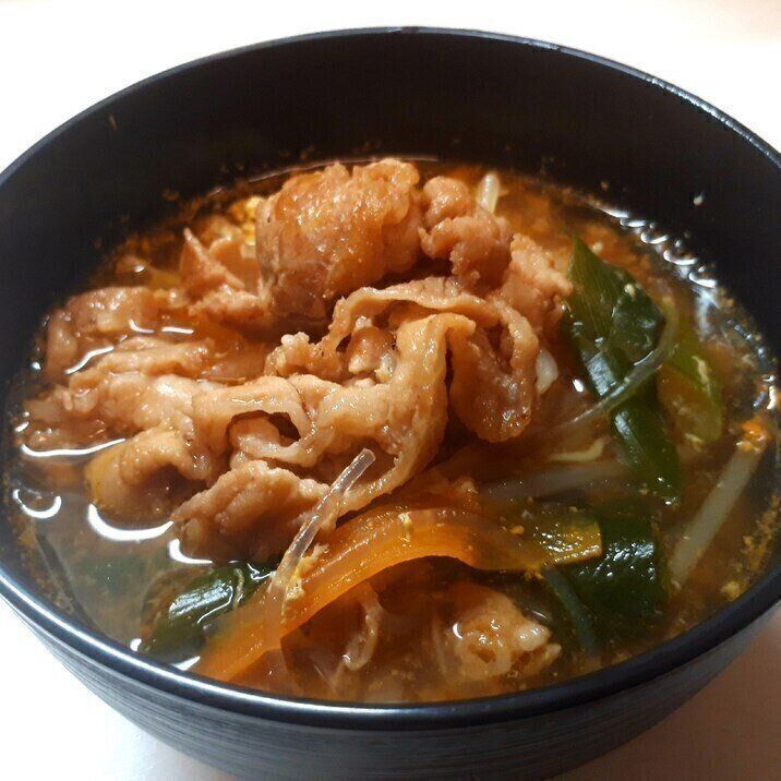 ボリュームたっぷり、もやしとはるさめの韓国風スープのレシピです。コチュジャンのピリ辛風味で体も温まる一品になっています。ごはんとの相性もよく、ついつい食べすぎてしまうかも。