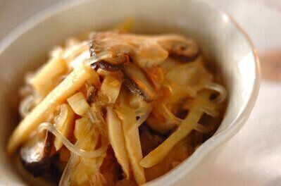 スープの材料を合わせてひと煮たちしてつくる「春雨とツナの炒め煮」。スープを吸った春雨のもちもち感がたまらない絶品春雨メニューです!タケノコが入っているため、食感も楽しめますよ。