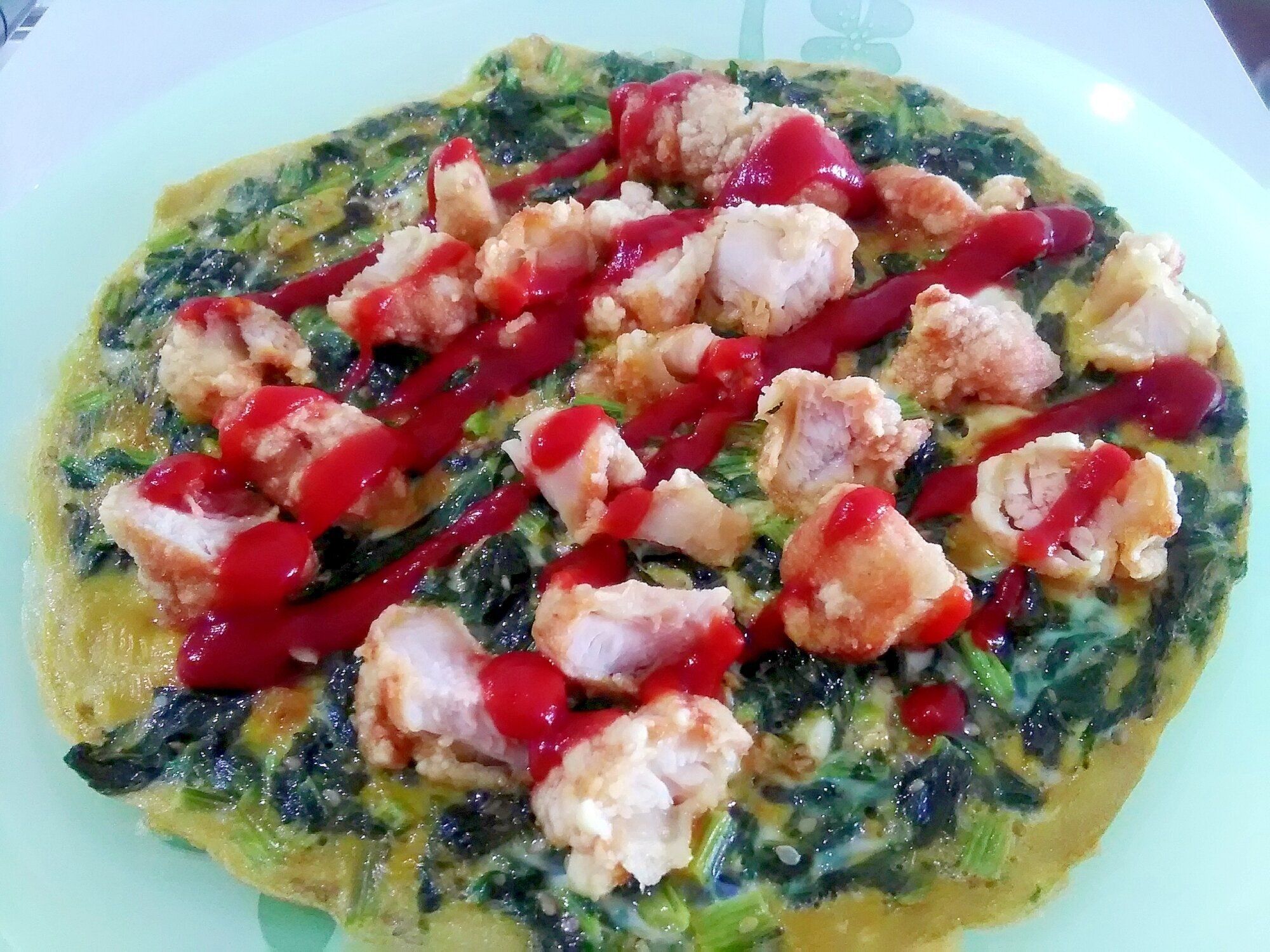 かぶの葉消費☆唐揚げとかぶの葉のオープンオムレツ