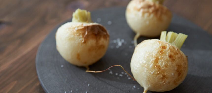 かぶの旨みを存分に楽しめるかぶの丸ごと焼きは、オーブンで簡単につくれる一品。かぶは丸ごと焼くことで甘みが凝縮し、とろ〜っと甘く仕上がりますよ。焼き時間はかかりますが、焼いている間に別の作業ができるのがうれしいですね。オリーブオイルと塩をかけて、できたてをいただきましょう!