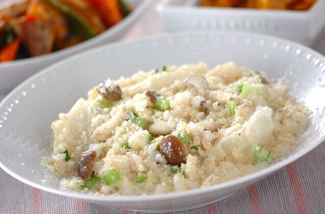 バターのコク、牛乳のまろやかな味わいを楽しめそうな、カブのミルクリゾット。かぶの葉も加えて彩りや食感をプラスします。洋食のメインメニューにおすすめですよ。