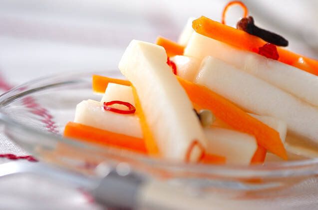 肉や魚料理に添えるだけで、箸休めになるのはもちろん、食卓がぱっと華やかになる菊花かぶらの甘酢漬けのレシピです。あらかじめつくっておけば、冷蔵庫で1週間ほど保存でき、お祝いの席やおもてなしにもぴったりです。