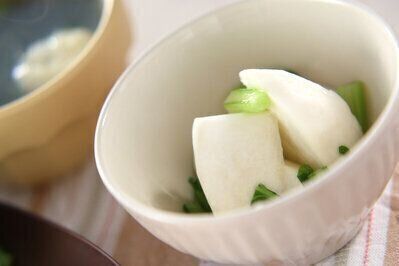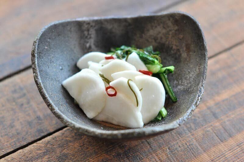 塩漬けの漬物をベースに、かぶの葉までおいしく食べられるように少し調味料を加えたアレンジレシピです。ぜひ葉っぱもいっしょに漬けてみてください。