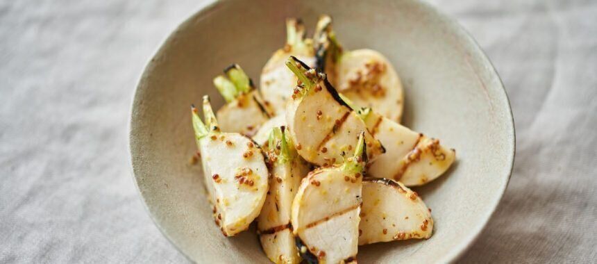 かぶは焼いてからサラダにすることで、甘味を引き出すことができます。かぶの甘みとマスタードを入れたドレッシングの相性は抜群です。