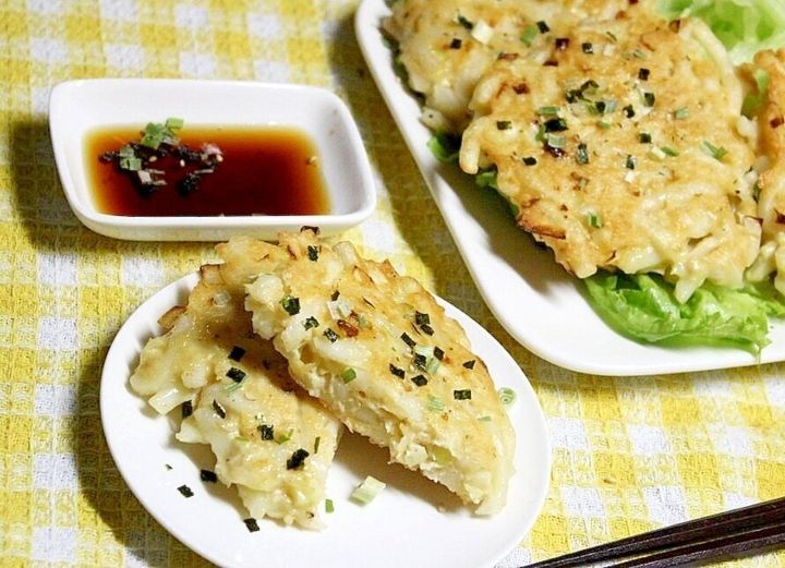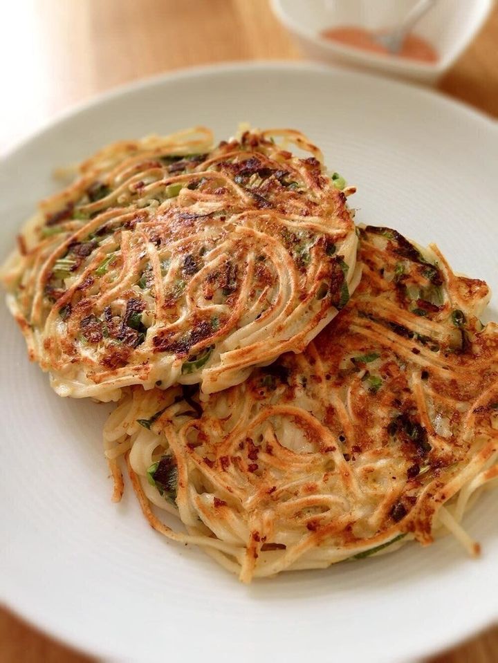 【うどんアレンジ】鶏ひき肉とうどんのモチモチお焼き