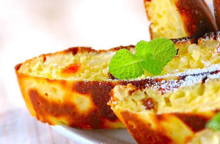 なんと、うどんがスイーツに大変身!刻んだうどんを生地代わりにした、簡単ケーキのレシピです。うどんとドライフルーツの食感を楽しめます。フライパンで焼くので、オーブンがなくてもつくれますよ。
