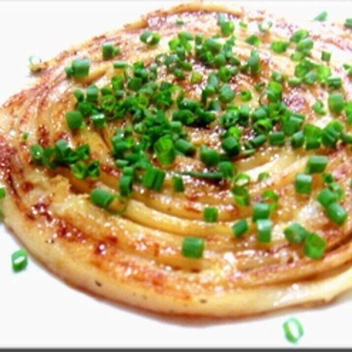 余ったうどんをぐるぐる巻き、チーズをのせて焼き上げたアレンジレシピです。ピザのような感覚で楽しめるので、子どもも喜びそうですね。チーズの代わりに卵を使っても◎。