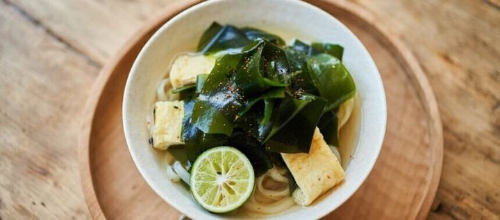 甘めに煮込んだ油揚げがポイントのきつねうどんです。油揚げは煮汁をサッと吸い込むため、お好みの味が作りやすいのが特徴!シンプルなうどんに、肉厚なわかめを加えると磯の香りがプラスされて美味しさがアップします。