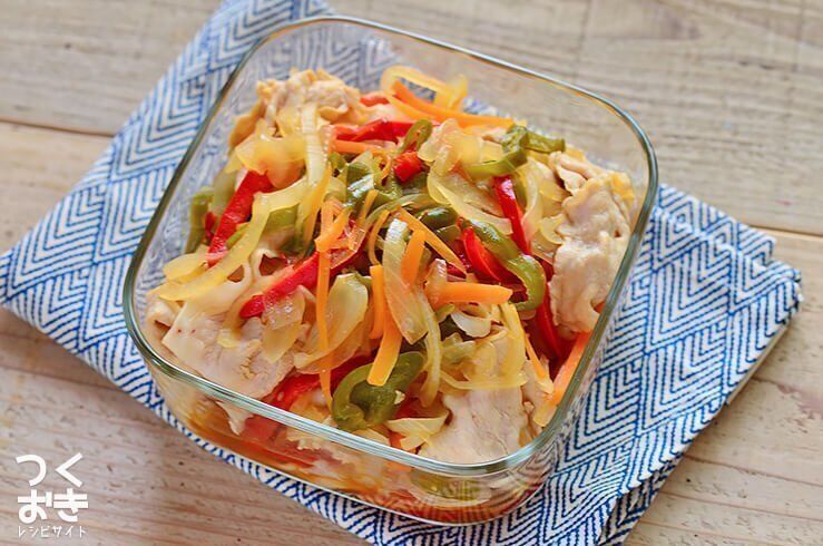 豚ロース肉しょうが焼き用でつくる「ポークジンジャー」。しょうがとコンソメ、たまねぎのソースでご飯との相性も抜群です。漬け込んだ状態でつくりおきとしてもおすすめです。