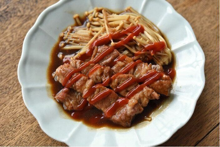 10分完成!豚肉とえのきのソース炒め