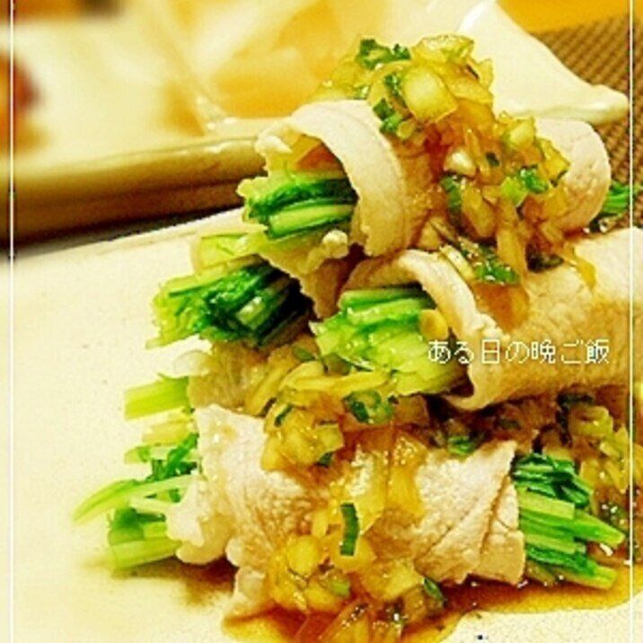 水菜の豚しゃぶ巻き☆たまねぎポン酢だれ