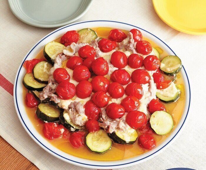 重ね入れたら一気に加熱するだけ!豚肉とズッキーニのチーズ蒸し