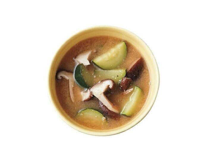 ほっと一息つきたくなる、家庭的な味のみそ汁レシピです。しいたけとズッキーニがゴロゴロと入っていて、素材が2つでも食べごたえもバツグン。具材に火が通ってから、みそを入れましょう。