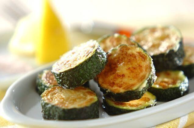 バターのコクがズッキーニと好相性のレシピ。輪切りにカットしたレモンを盛りつければ、おしゃれな見た目とさっぱりした味わいを楽しめます。フライパンひとつでできあがるので、簡単につくれる一品です。