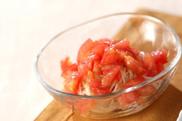 そうめん、トマト、調味料があれば簡単につくれる一品です。唐辛子を加えたピリ辛な素麺には、食欲を増進する効果も期待できます。