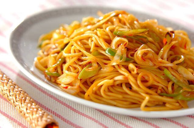 山椒のおすすめレシピ2:ネギの山椒焼きそば