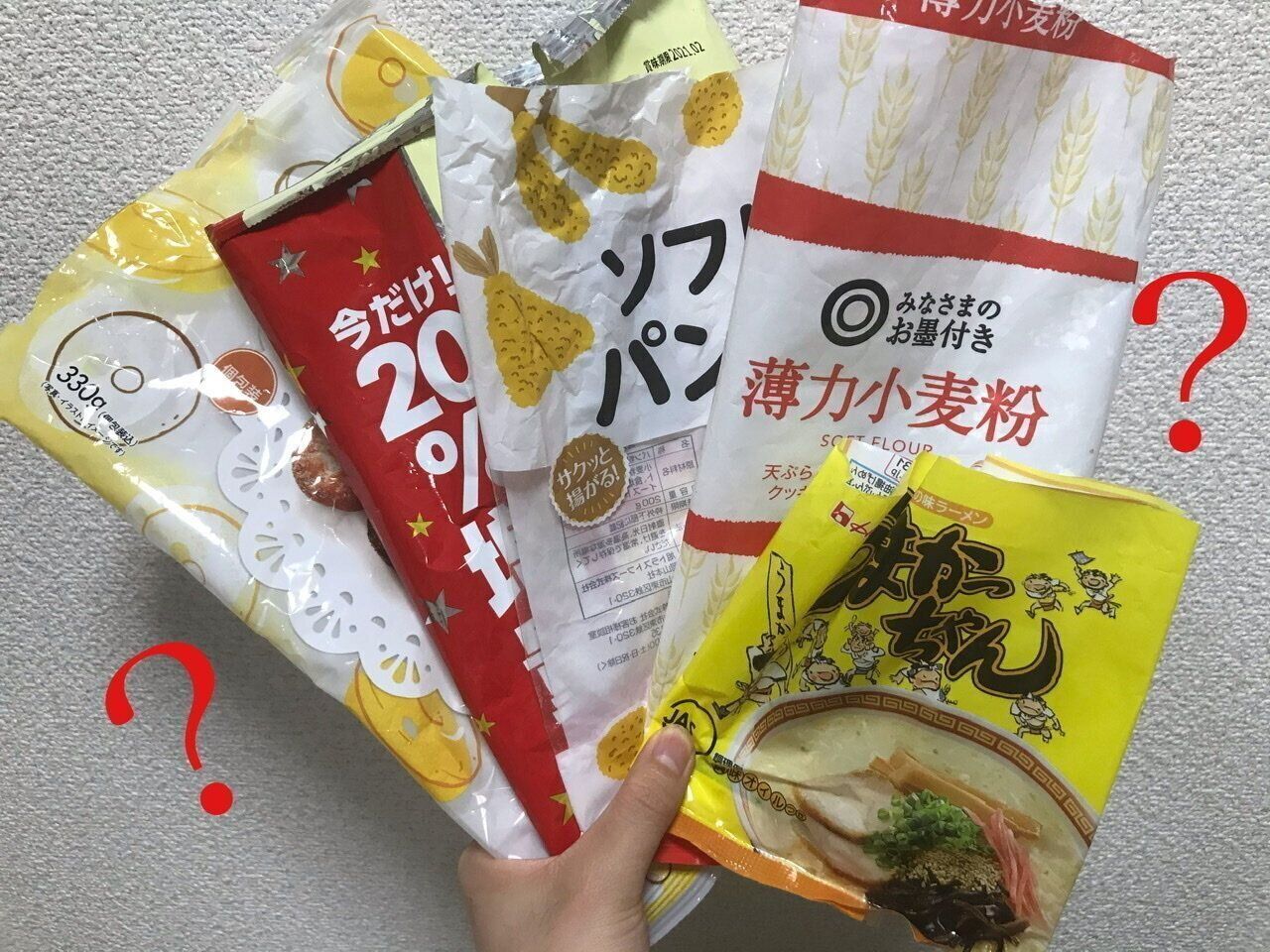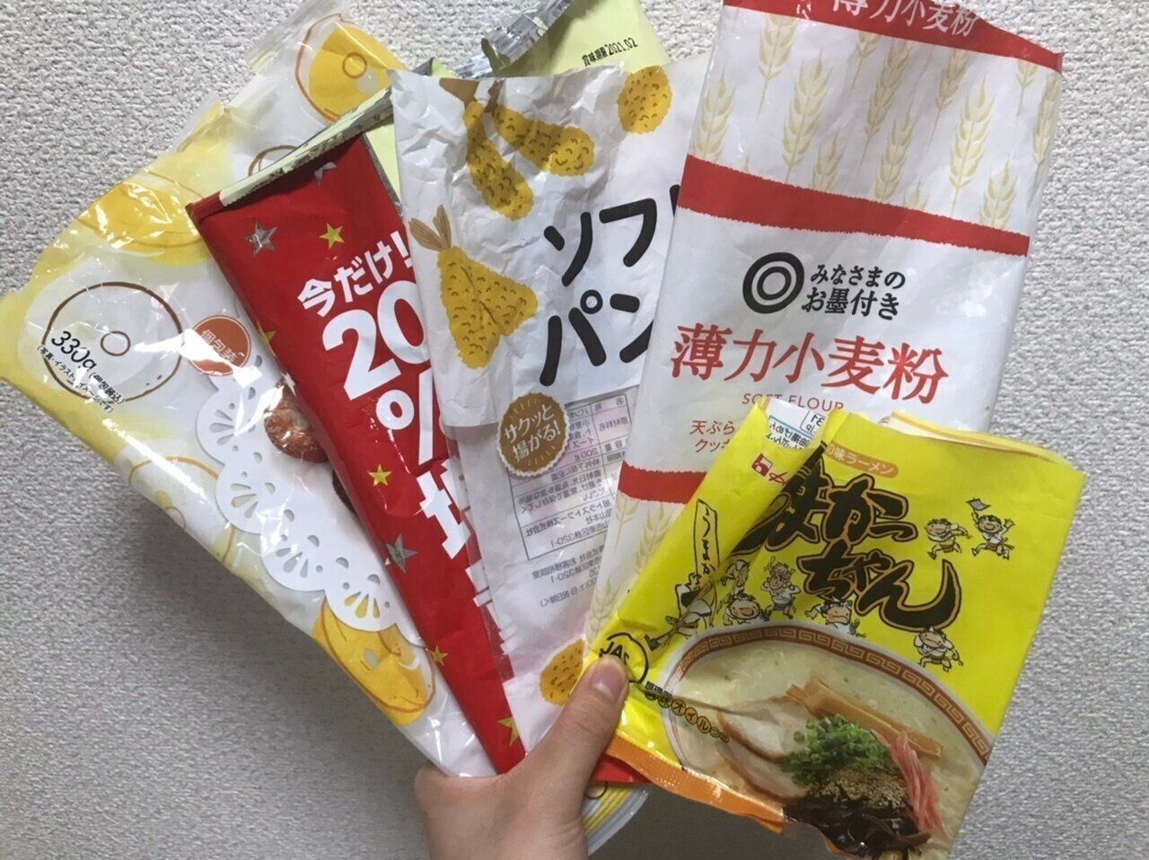 食パンの袋、お菓子の袋、冷凍食品、ラーメンなどの食品やお菓子の袋です。