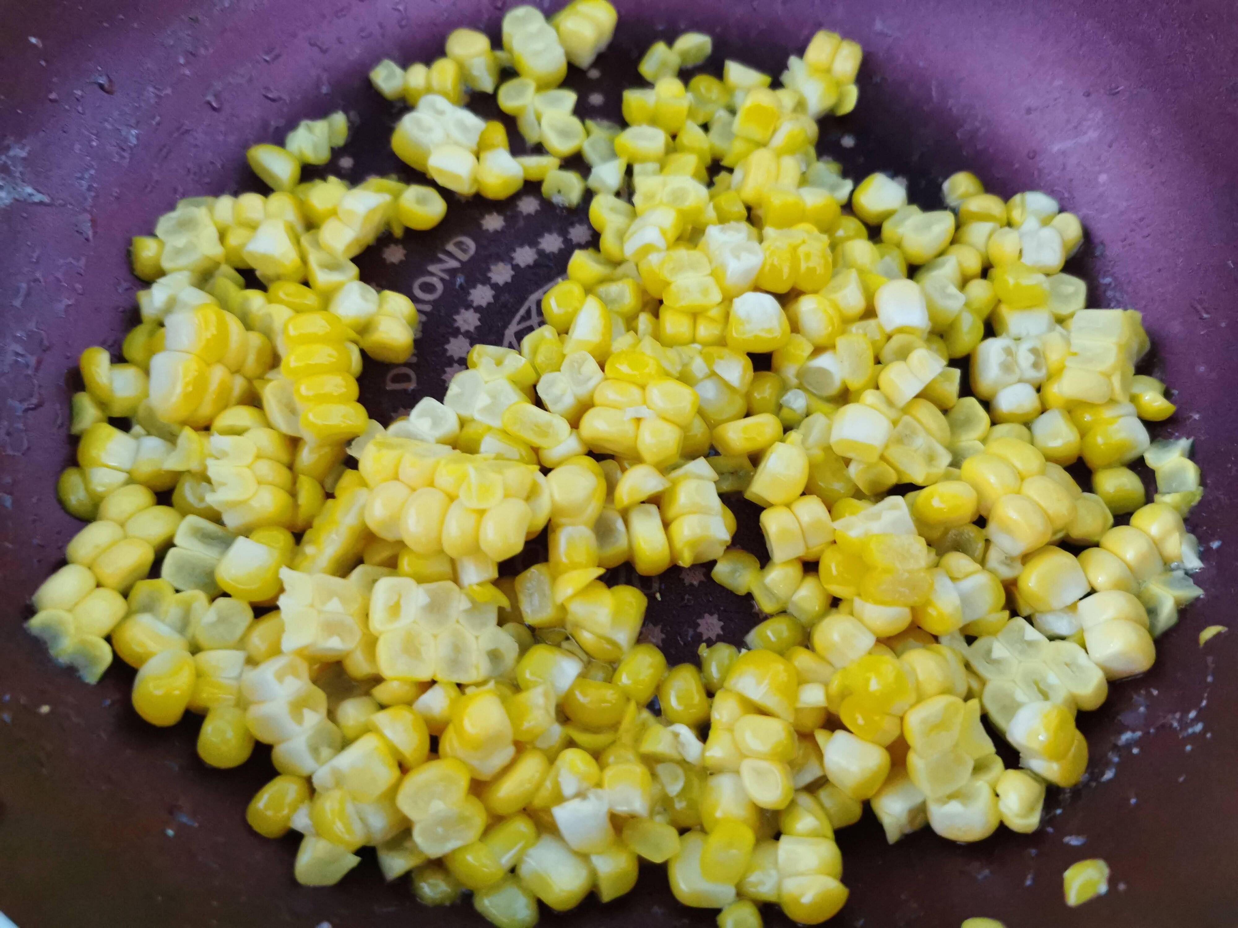 (2)フライパンにバターを熱し、(1)を入れて炒める。