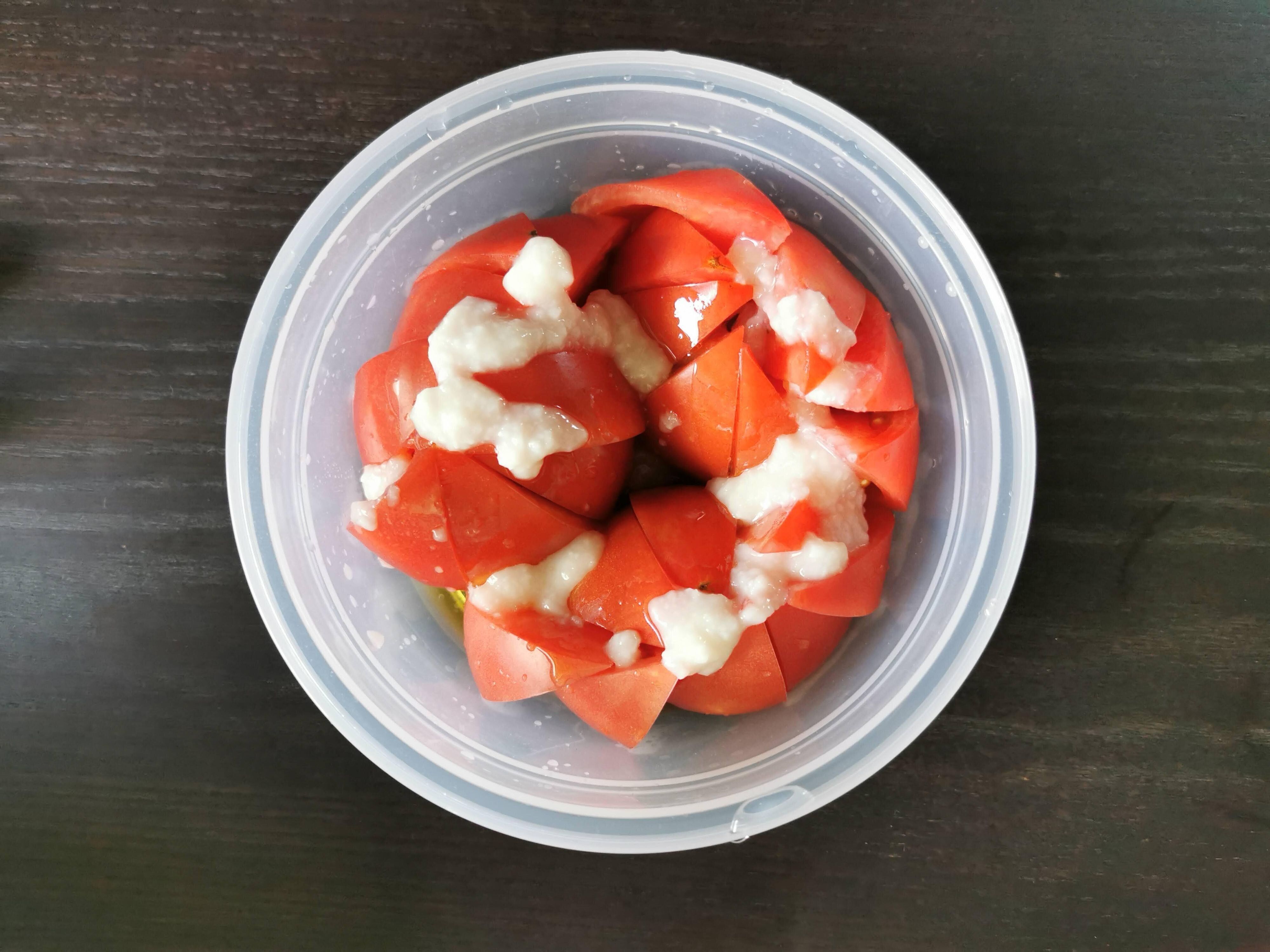 (2)オリーブオイルと塩こうじを(1)に和え、
