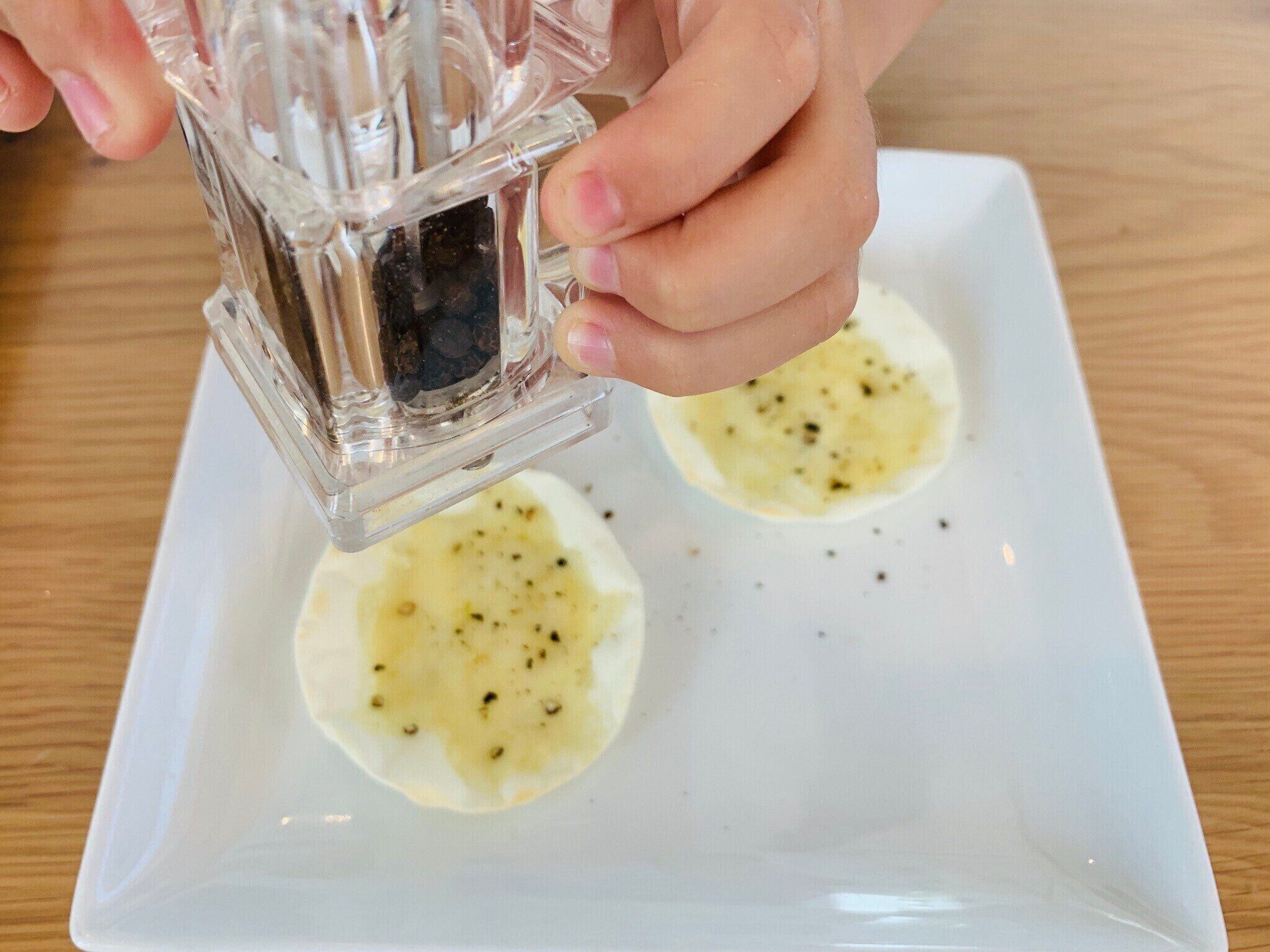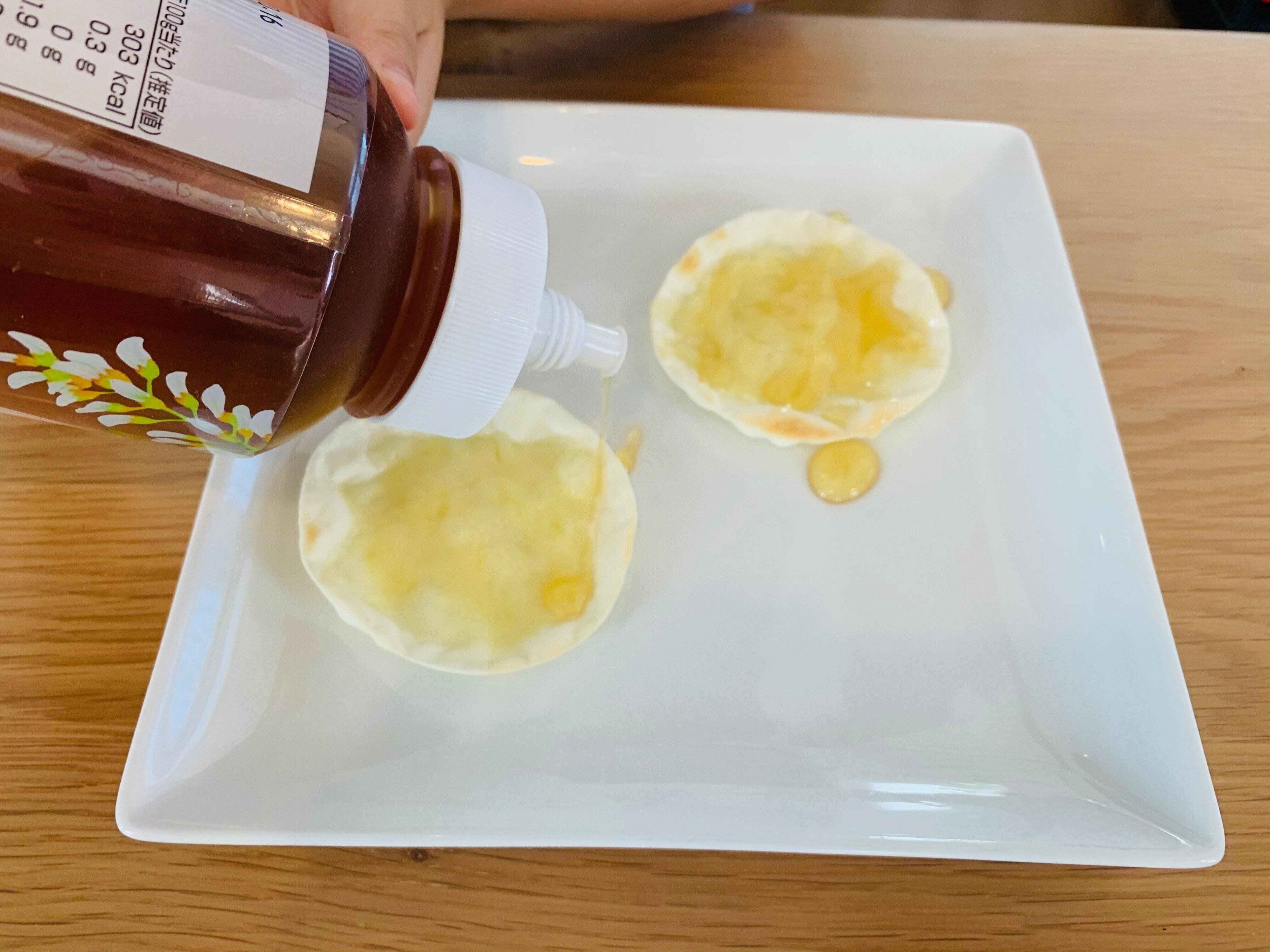 その後①ブラックペッパーをふりかける②はちみつをかける