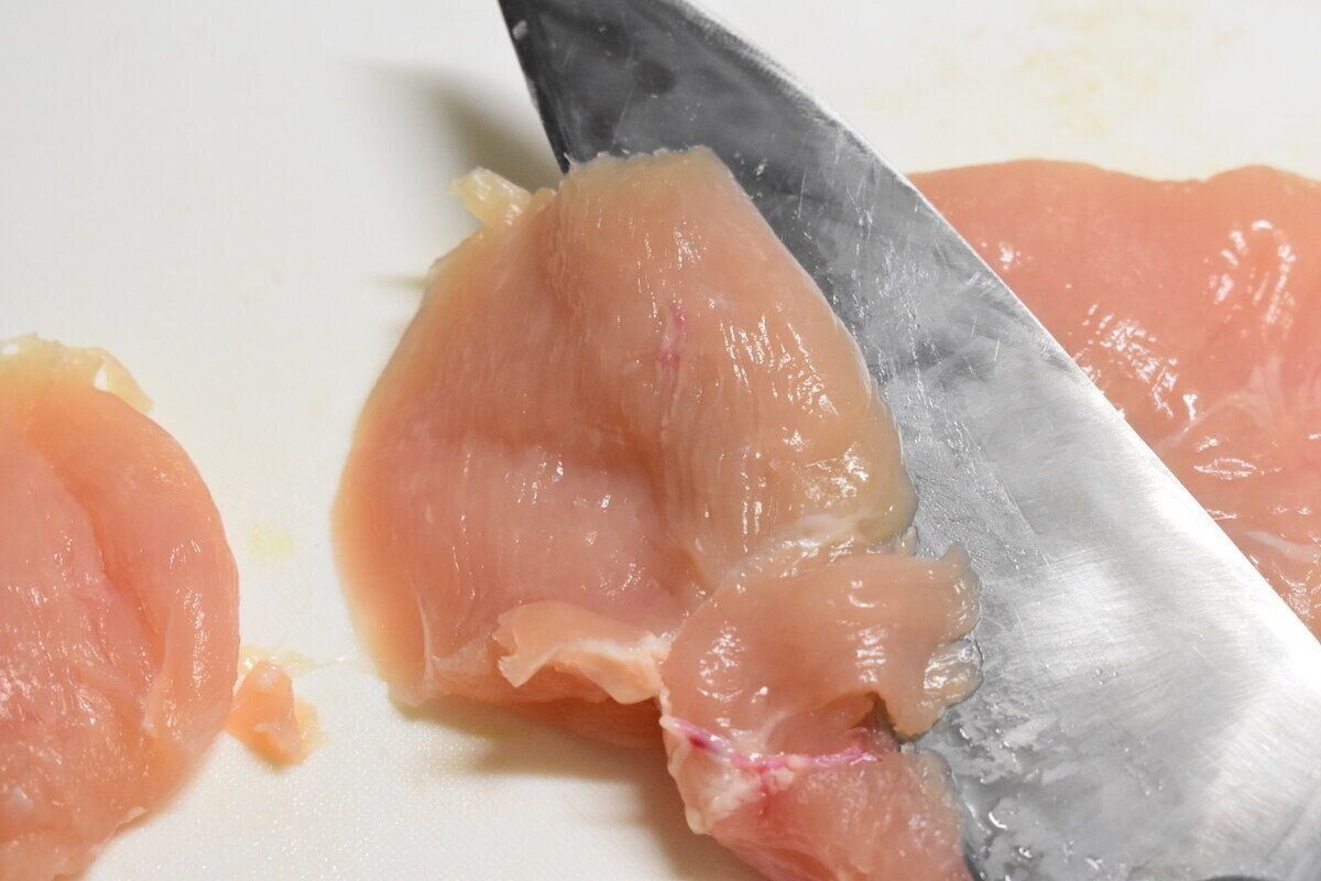 ・今回は小さめの鶏むね肉の皮なし(正味250g)を使用しています。もしもっと大きい場合はタレの増量が必要です。