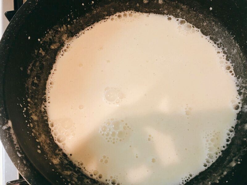 (3)豆乳と粉チーズを軽く煮詰めます。