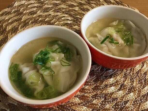 我が家お気に入りのスープ!餃子が水餃子のようなワンタンのような感じになります。