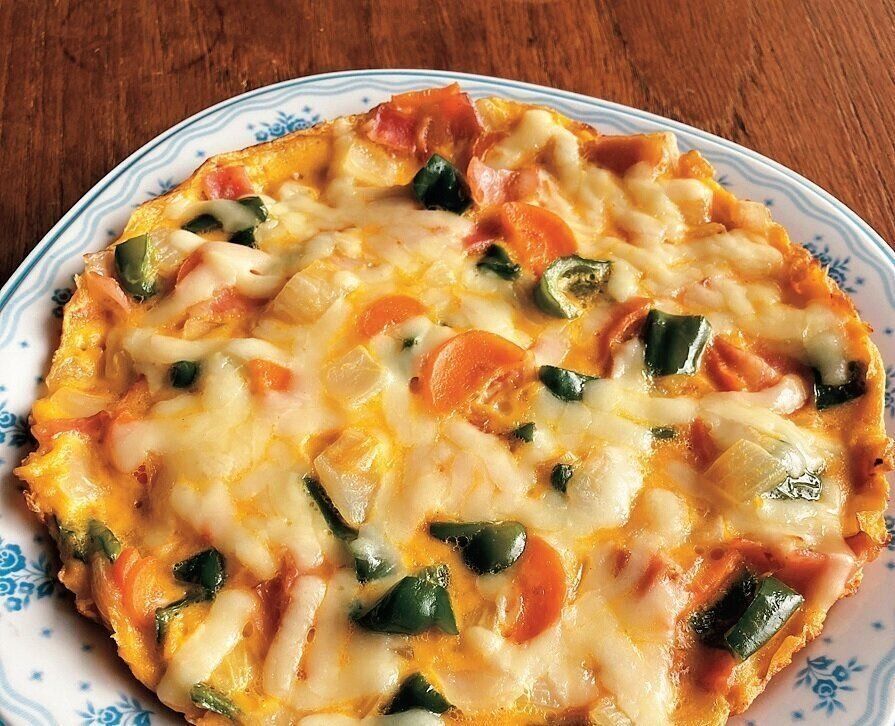 半端野菜を同じくらいの大きさに切って炒め、塩、こしょう、砂糖各少々を混ぜた溶き卵を流し入れてオムレツに。最後にピザ用チーズを散らして、チーズが余熱で溶けたら完成です。アルミカップに入れて、オーブントースターで焼き、おべんとうに入れてもGOOD!