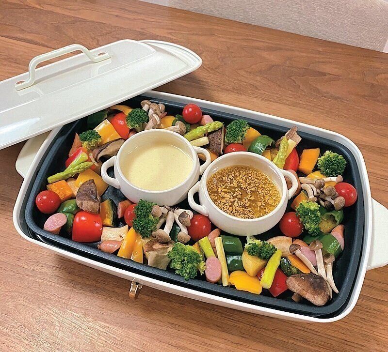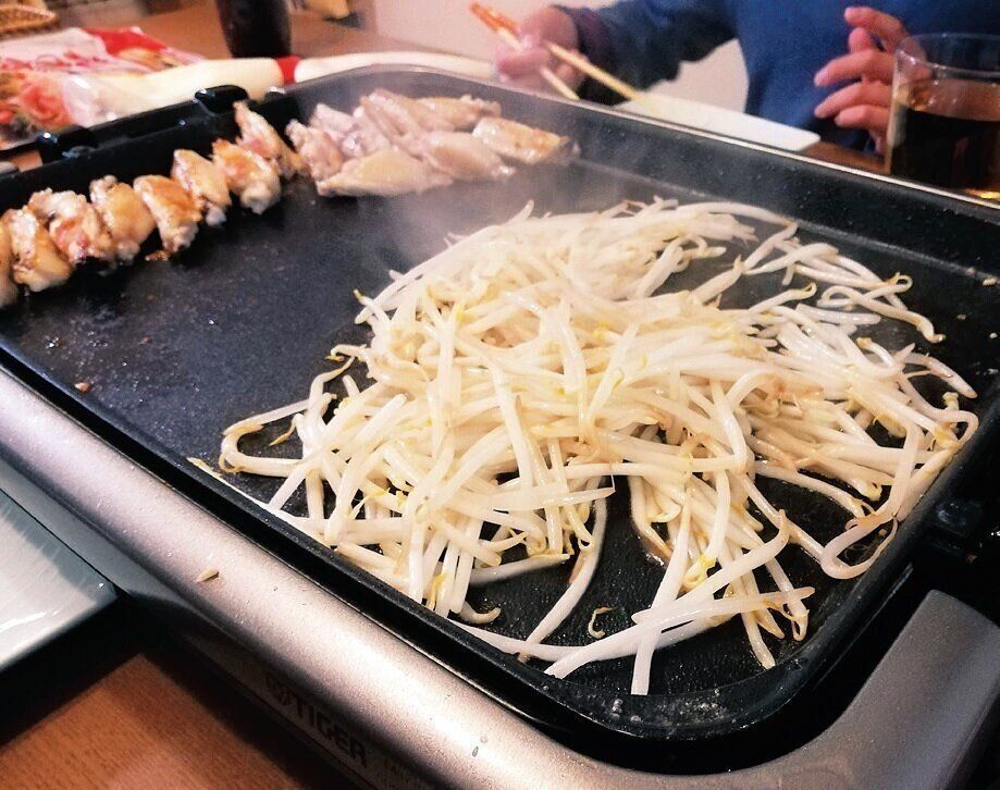 週末はホットプレート料理にすることが多いんですが、半端野菜はここで一気に登場。肉や焼きそばと一緒に焼けば、子どもたちがとにかくよく食べる!味つけは焼き肉のたれをかけるだけだから、ラクち~ん!