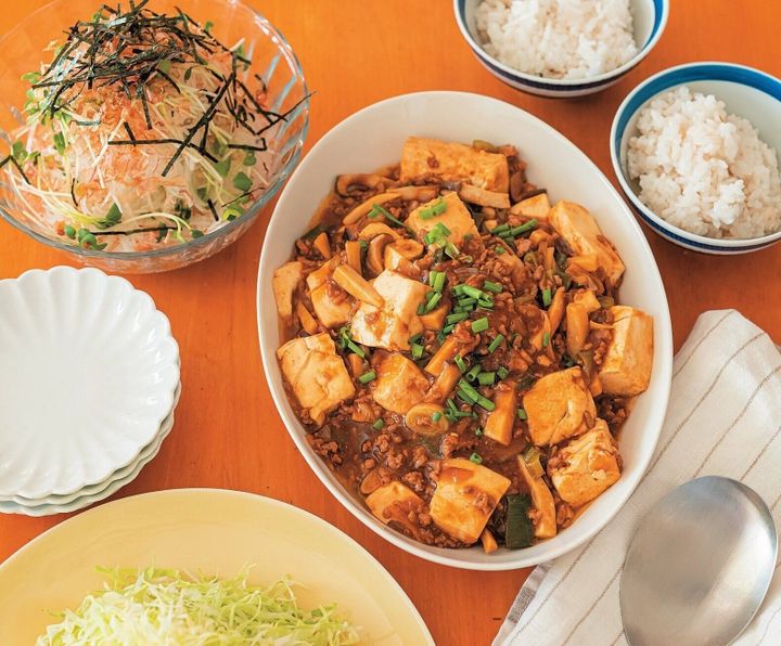 安くてかさを増す豆腐は、食費安定の神食材。5人分で2丁使えば、ひき肉は250gくらいでボリューム満点な麻婆豆腐に。加える食材はエリンギなどお好みの物で!