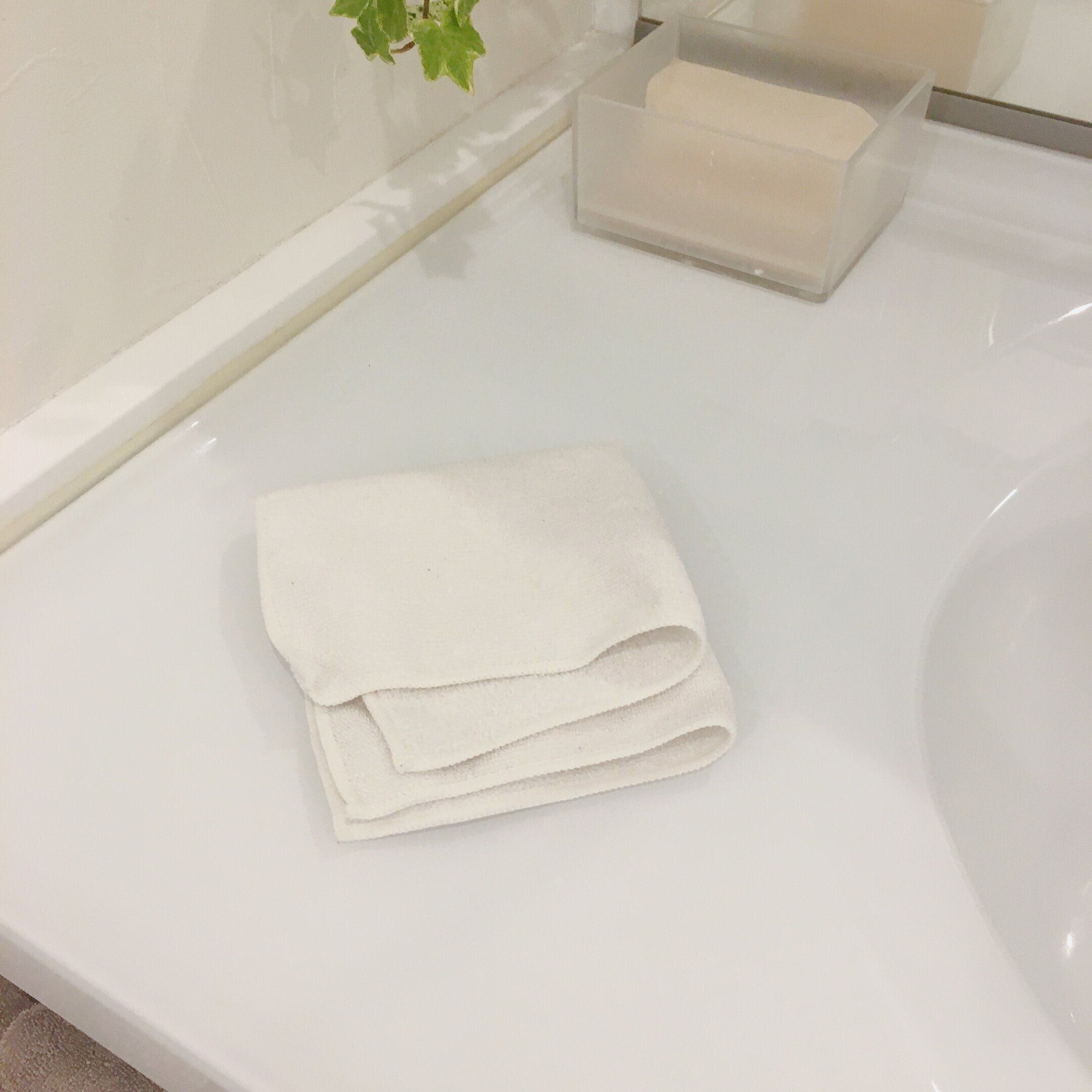 我が家では洗面所にマイクロファイバークロスを一枚置いて、洗面所を使うたびに周りの水ハネを拭いてもらってます。マイクロファイバークロスでなくても普通のタオルでも大丈夫です。水ハネがない方が次に使う人も気持ちよく使えることを子どもたちには伝えています。