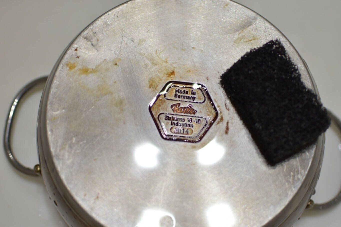 軽い焦げがついたステンレスの鍋はあっという間にキレイになります。