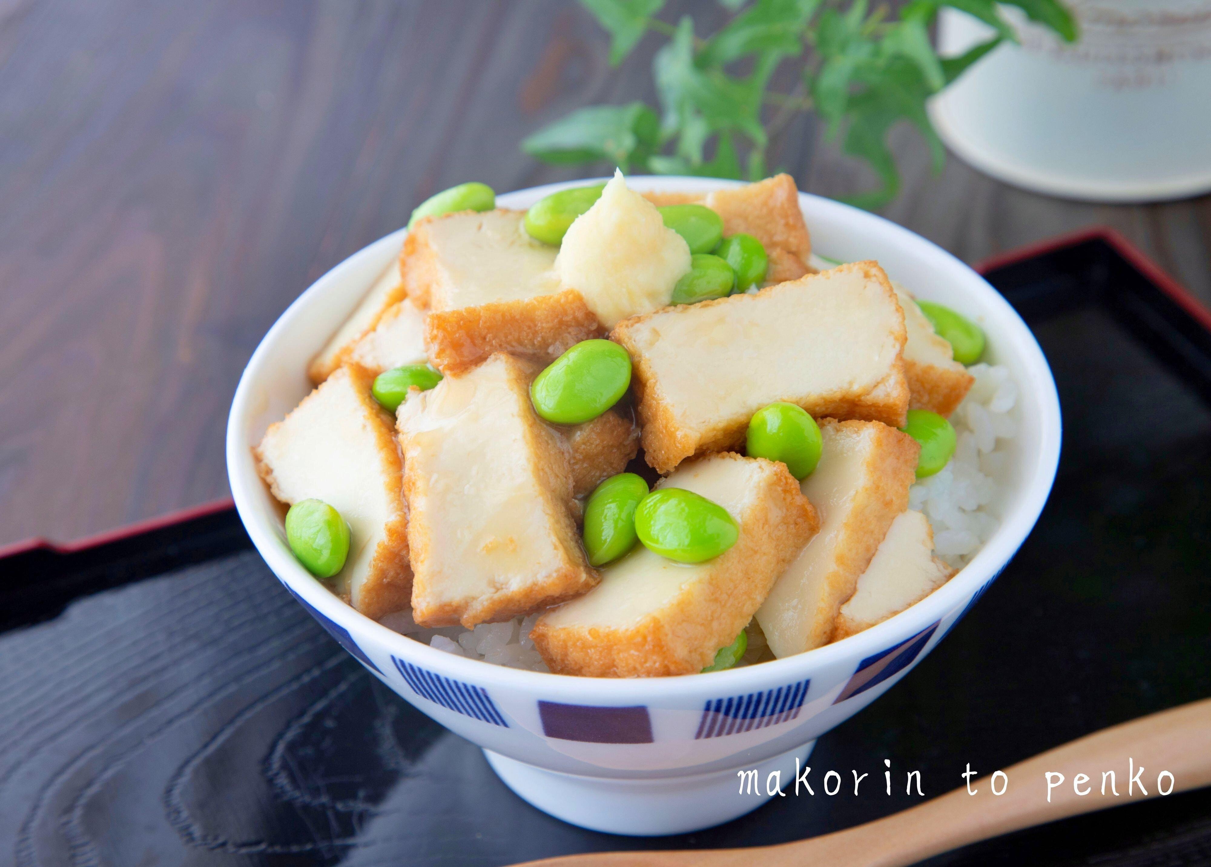 今回、使う食材は「厚揚げ」「冷凍枝豆」「ご飯」の3つ。