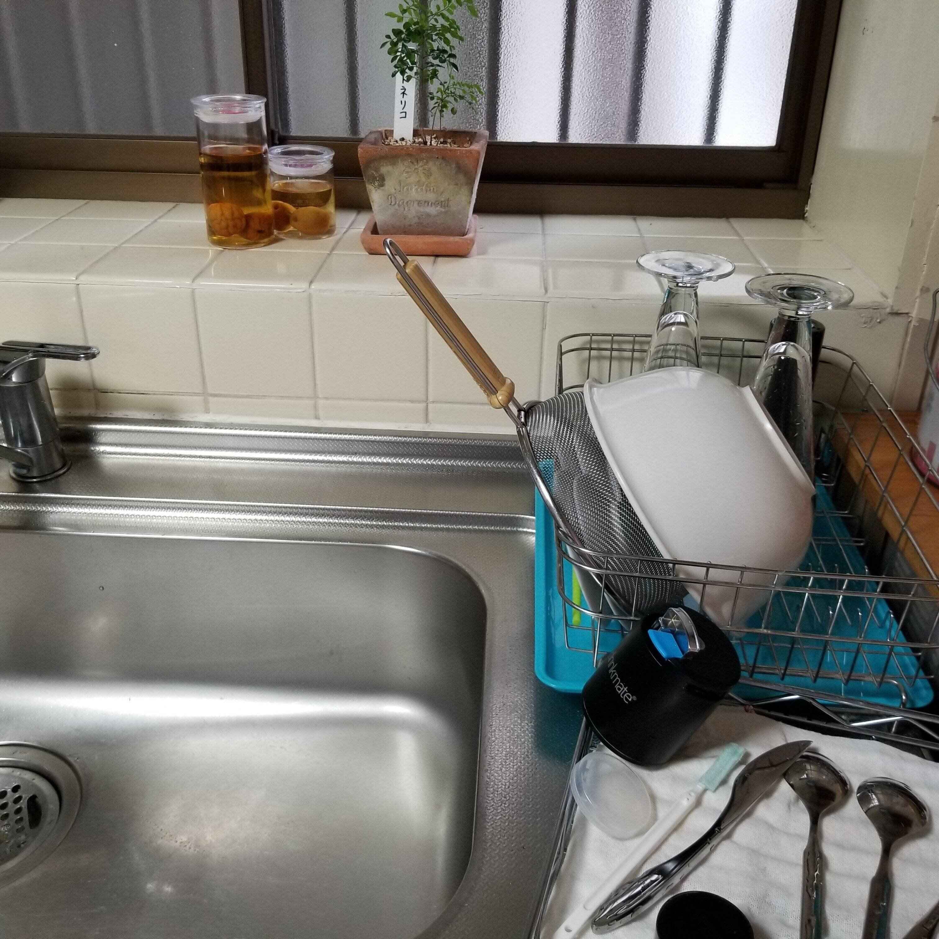 ミニマリストを目指した時に一旦この洗いカゴを撤廃したことがありました。布巾の上に洗った食器を置いて、拭いてしまってシンクの上はスッキリ!