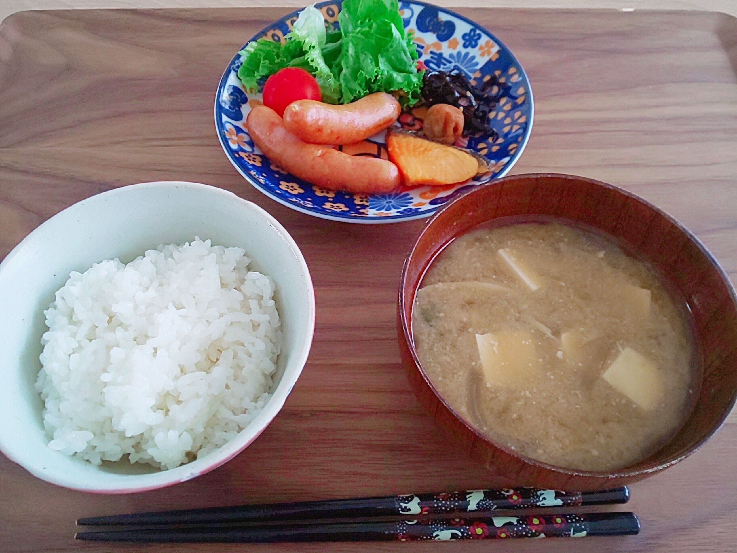 魚加工食材はちくわ、かまぼこ、はんぺんの中でどれかを常備しています。ソーセージはボイルしたり、ソテーしたりと調理法を変えたり、魚肉ソーセージにしたり…。焼き魚は鮭、ししゃも、塩サバなど安い時に買って冷凍して、前の日に冷蔵庫で解凍しています。他につくだ煮や梅干し、お漬物やミニトマトなどすぐに出せるものを準備しています。
