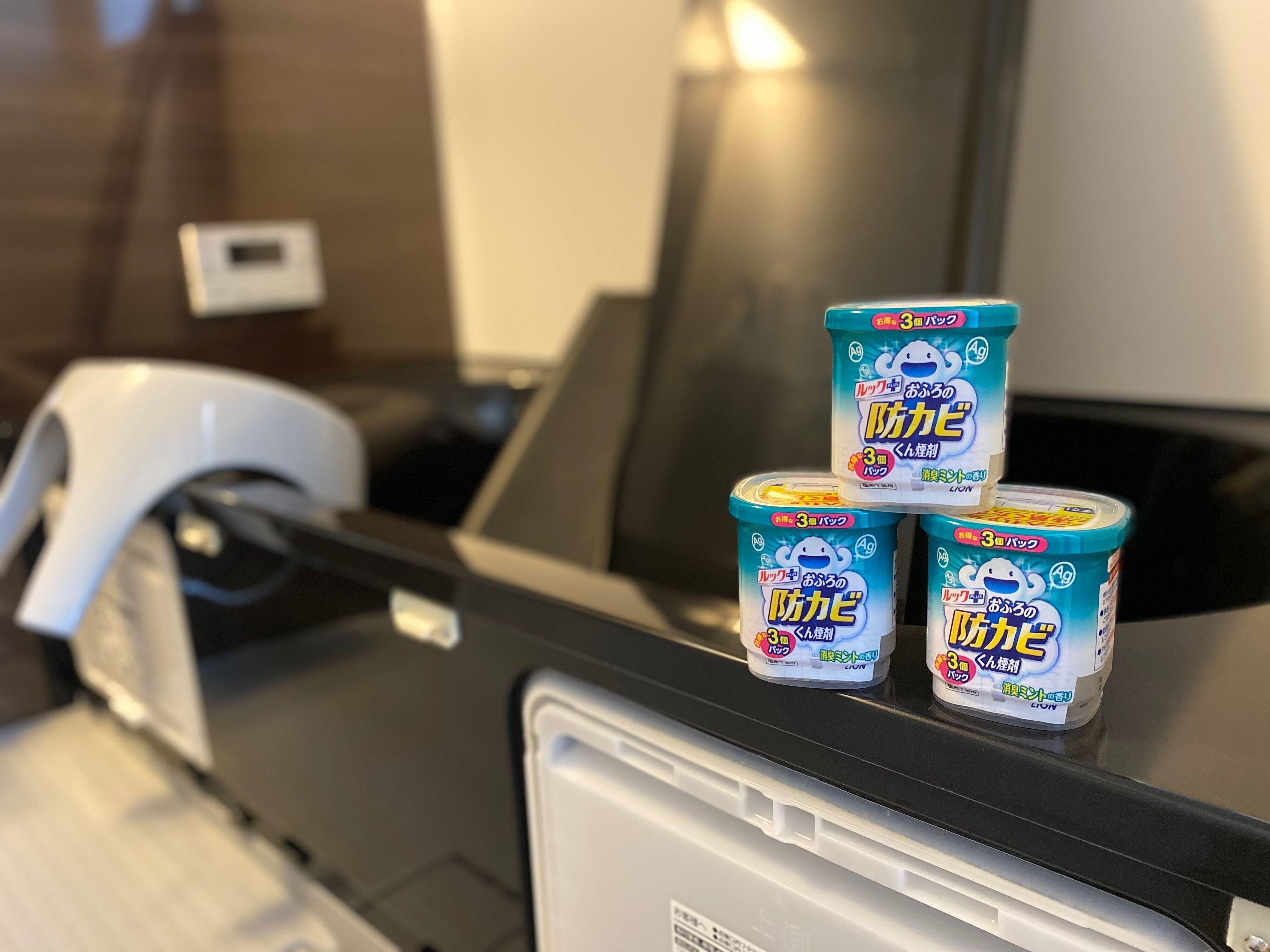 仕上げに「防カビくん煙剤」でお風呂を丸ごと除菌します。こちらは塩素系不使用の、銀イオン(Ag)で除菌してくれるアイテムです。塩素系とは違い、ツンとしたにおいもありません。