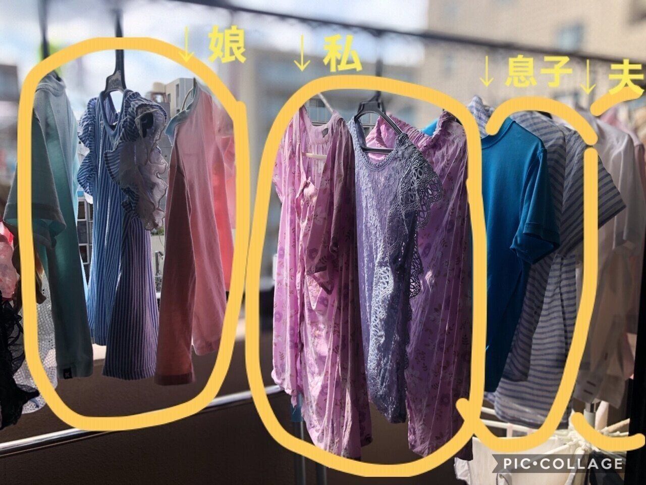 そこで、洗濯物を干すときに、家族別に分けて干すことにしました。夫の物はこのあたり、息子の物はこのあたり、とそれぞれの洗濯物をまとめて干すことにしたのです。