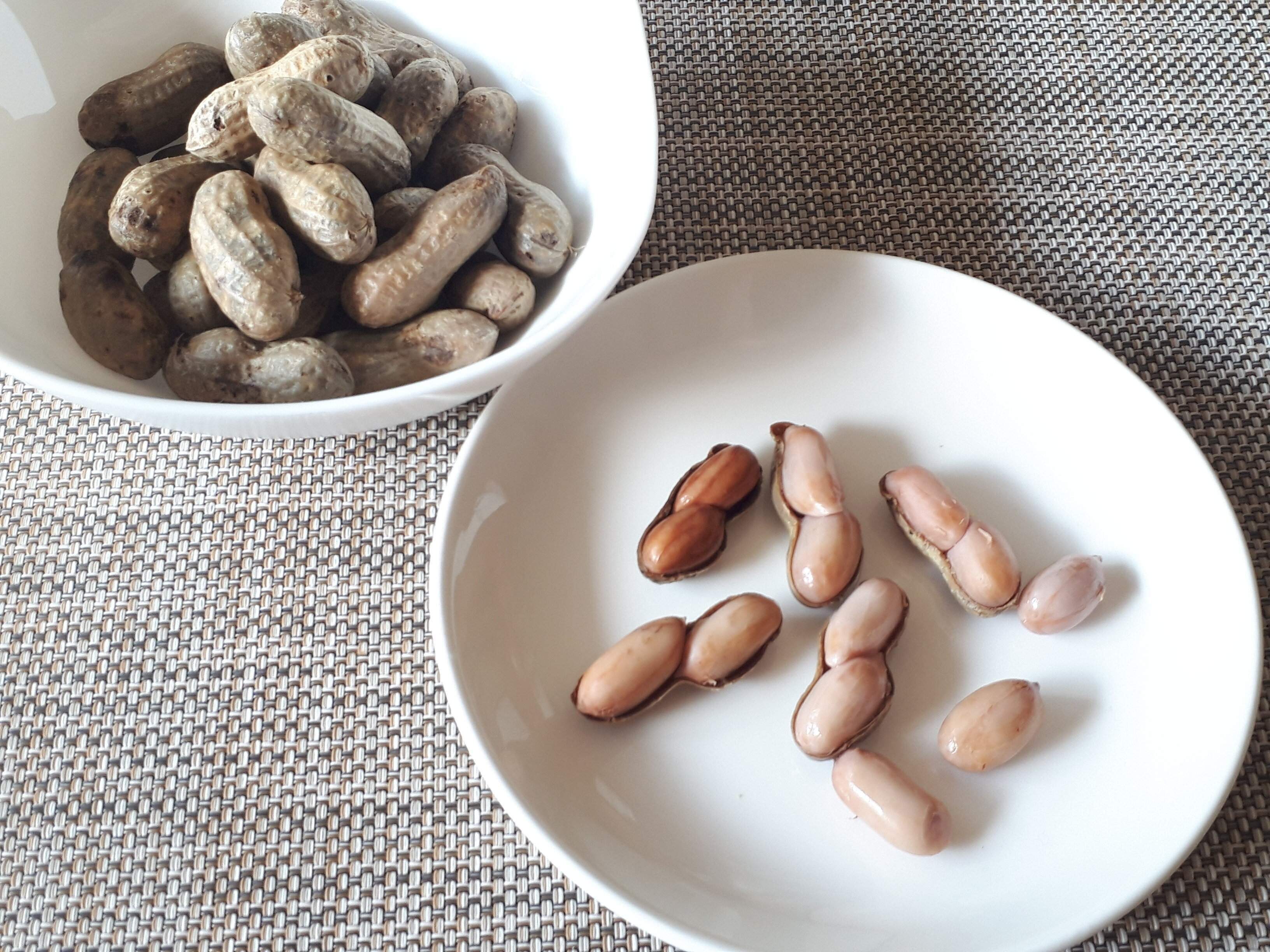 ※ゆで時間によって落花生の食感がかわります。ややシャッキリ感を残したいかたは30分、やわらかくねっとり感を出したいかたは40~45分ゆでます。30分経ったら、味見してお好みの食感になるよう調整してください。