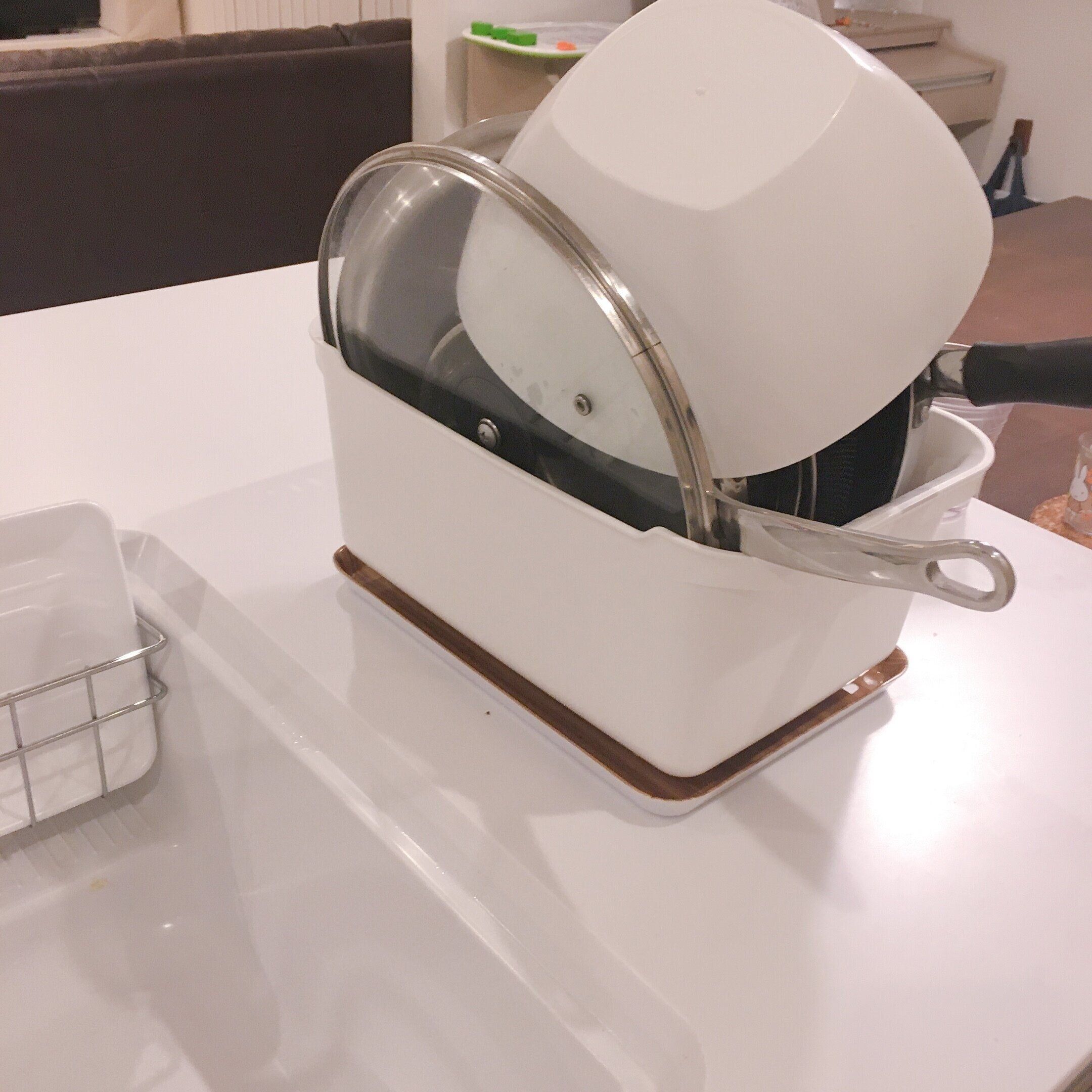お鍋やフライパンを洗ってそのまま置くだけ。これはやってる方も多いかと思います。ある程度乾いたら別の布巾でササッと拭いて調理器具はすぐに収納できます。