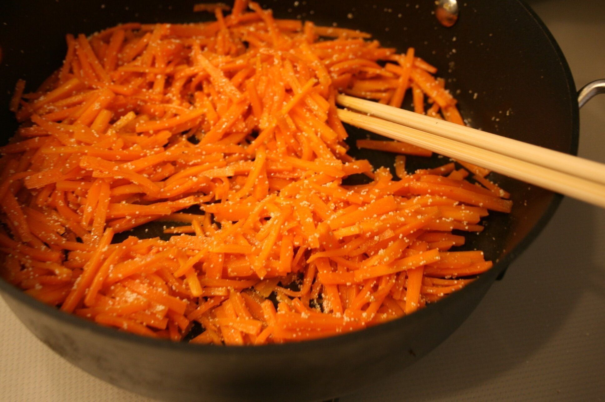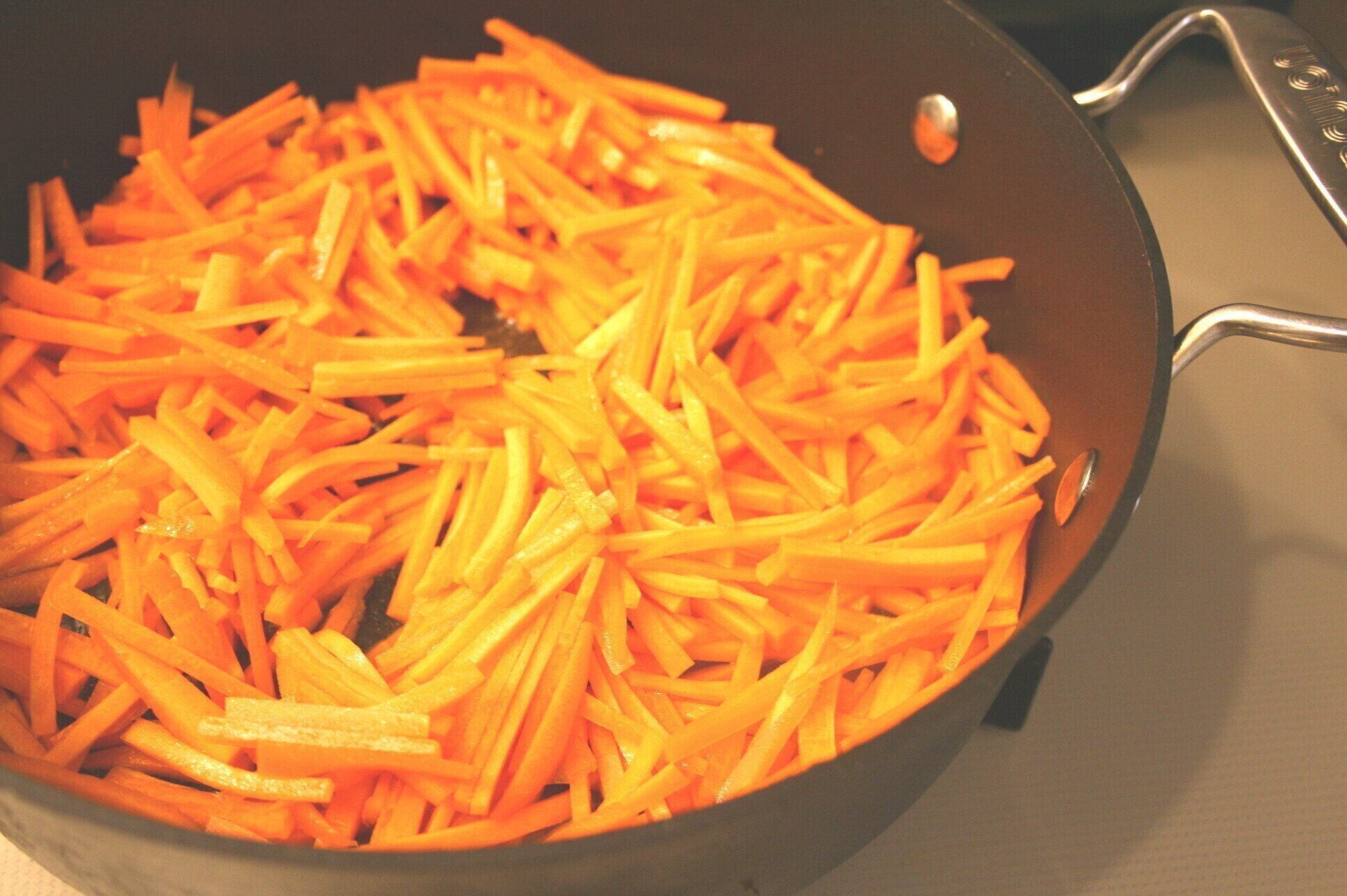 3.フライパンに油を入れ熱し人参を軽く炒めたら塩少々する。