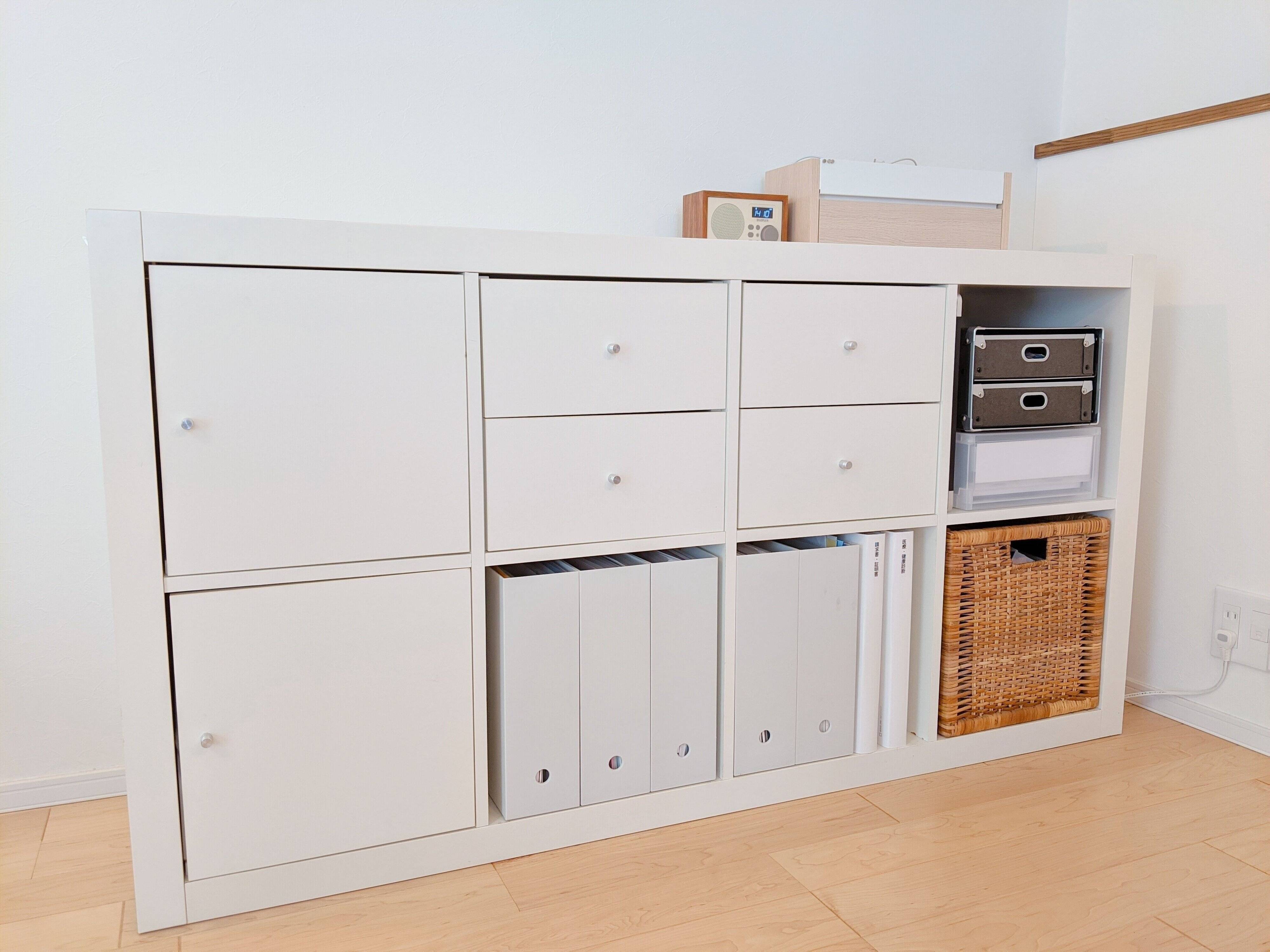 リビングにIKEAのキャビネットを置いているのですが、ここも以前はおシャレに飾れないものかと、ポスターやら花瓶やらキャンドルやらを置いて試行錯誤していました。