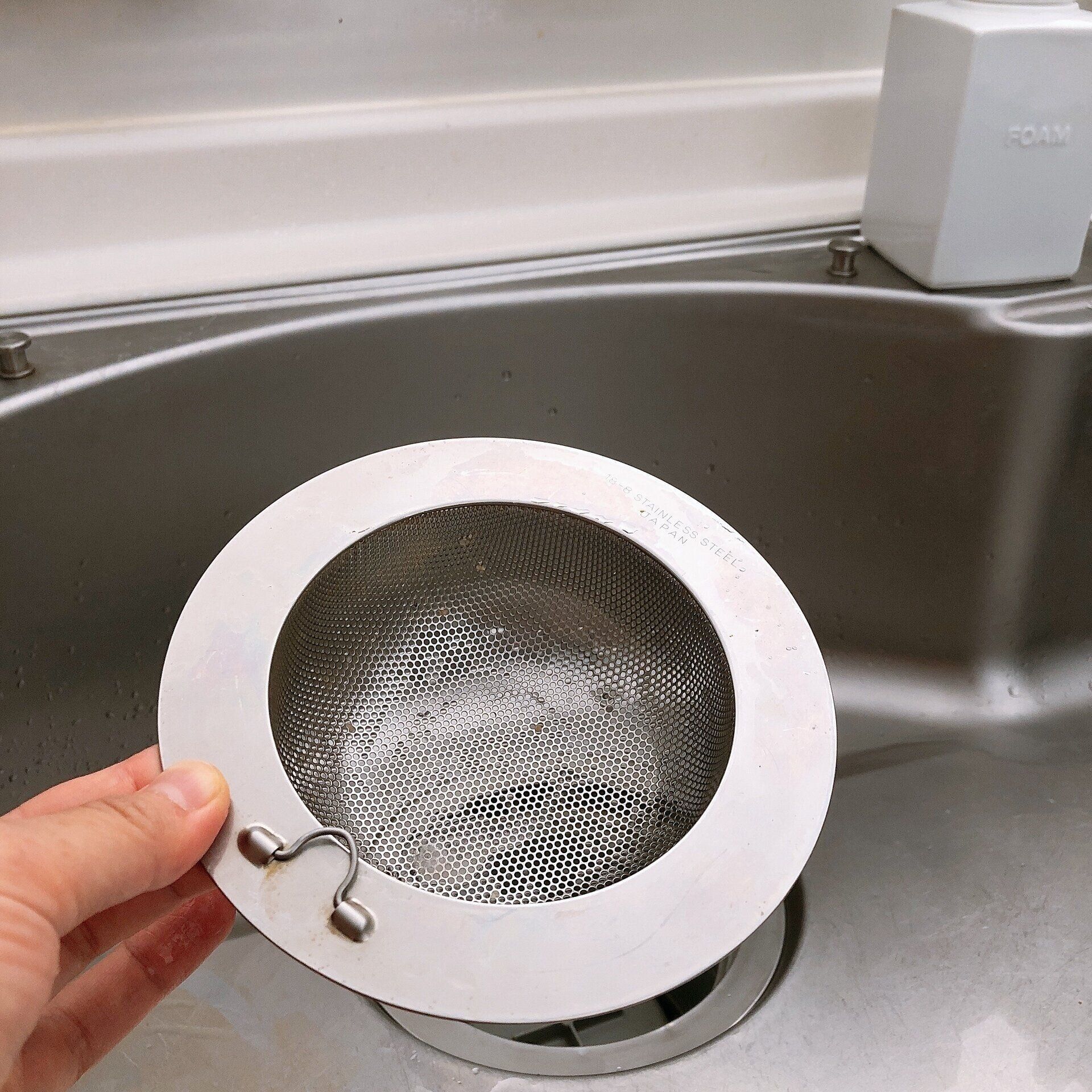 更にステンレス製の排水口ゴミ受けに変えたことでもっと楽になりました。