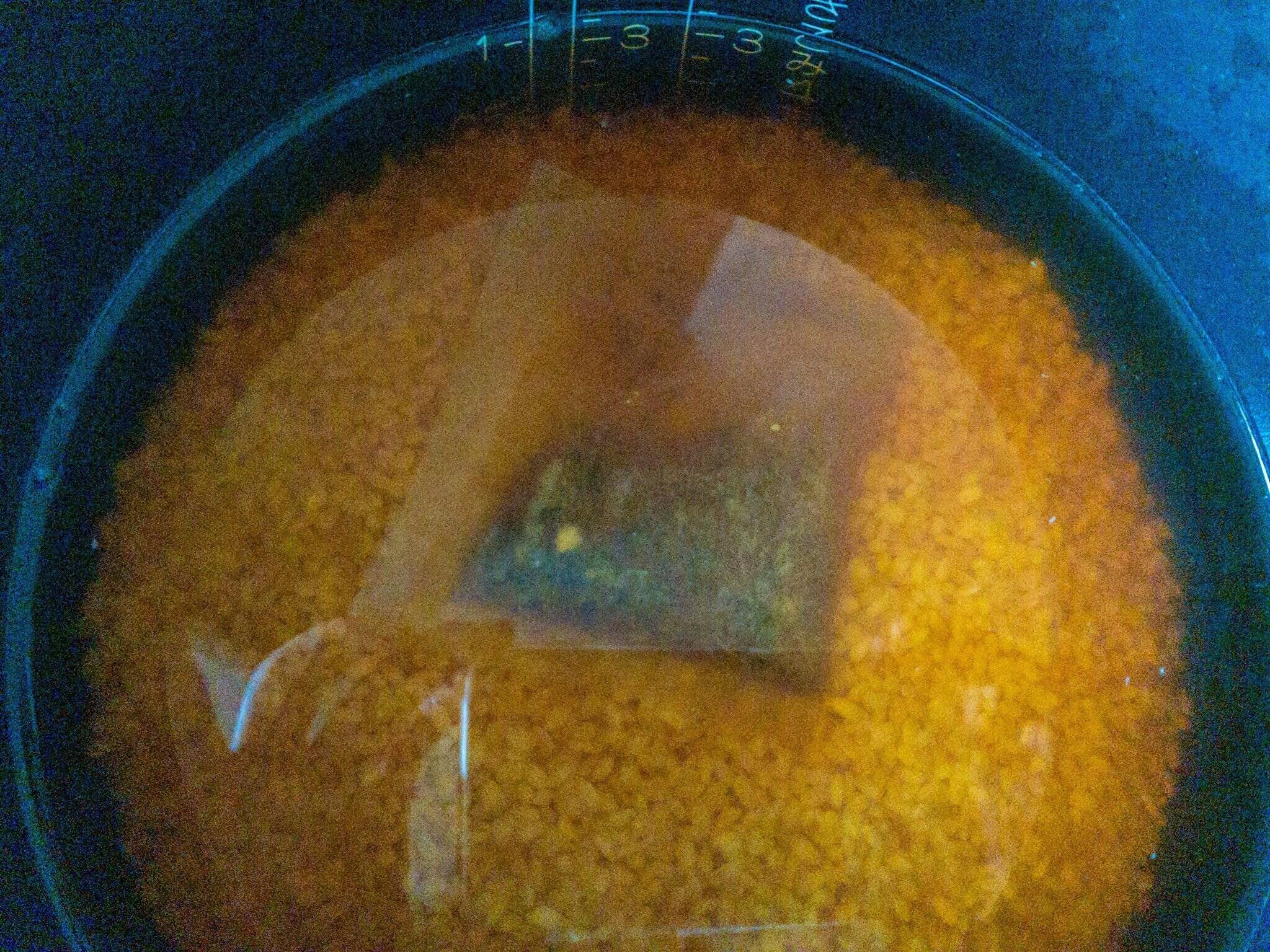 3.炊飯器に米、水、調味料を入れて軽く混ぜ出汁パックを入れる。