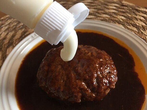 ハンバーグにたっぷりとかけます。