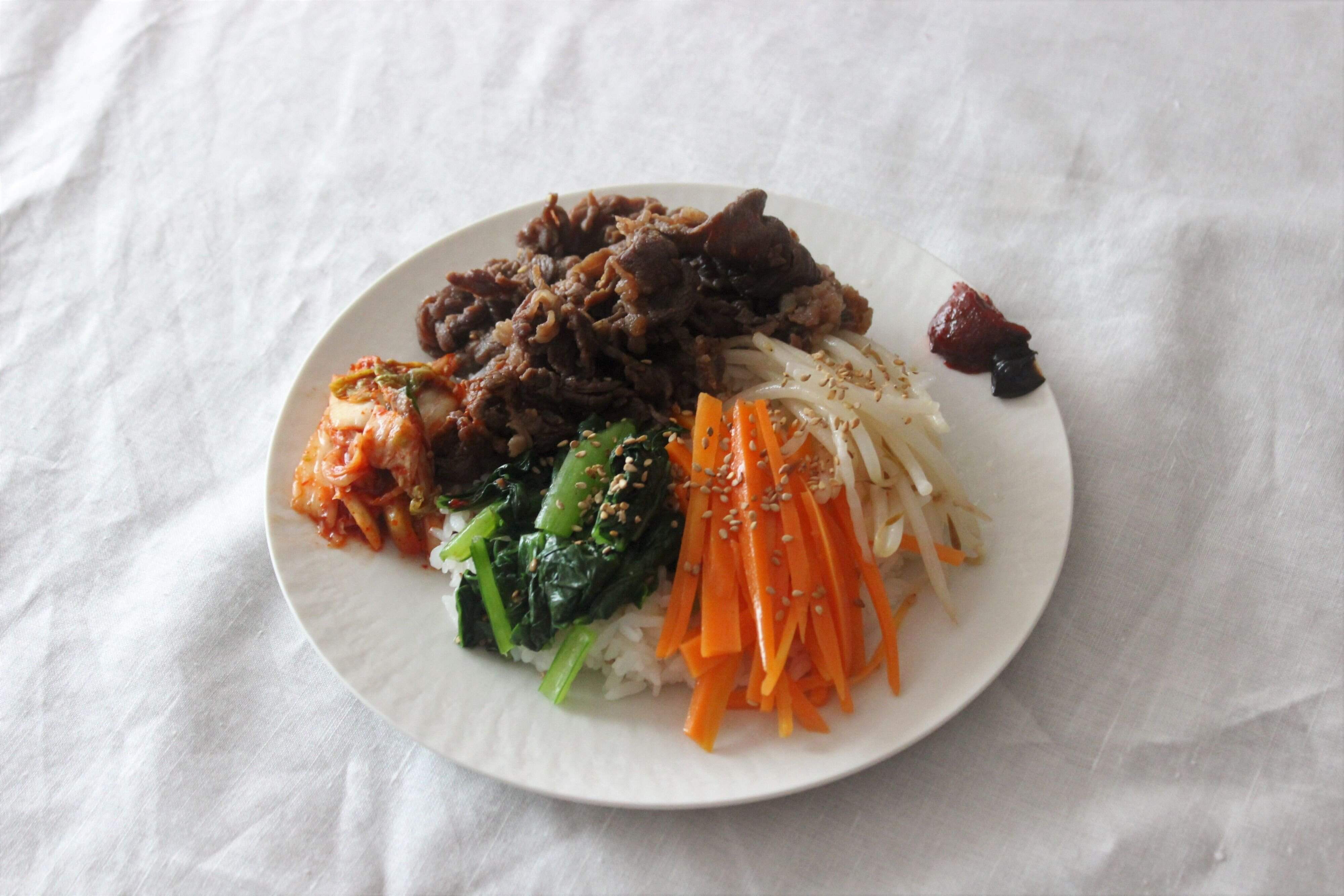 今日はつくりおきしたナムルを使って簡単なビビンバを作ってみたのでご紹介したいと思います。